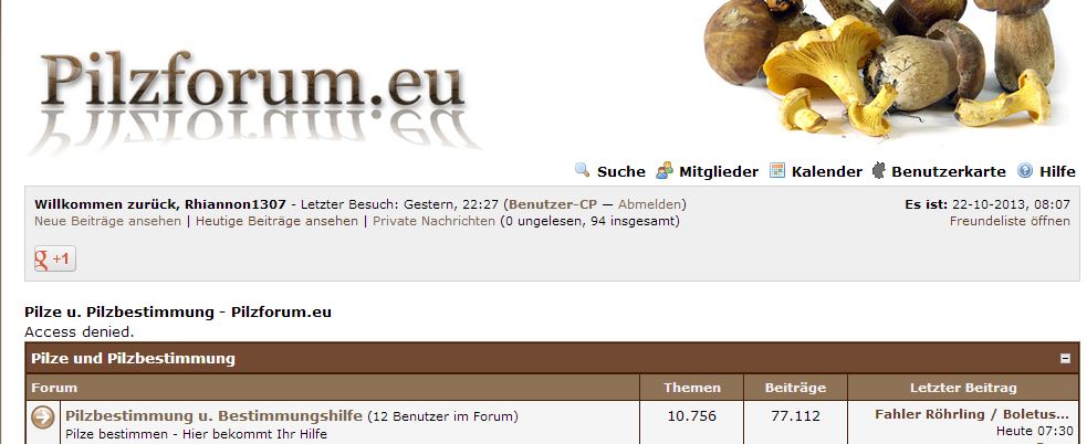 Negativ!Allerdings habe ich auch keinen Zugang mehr zum Hauptindex vom Pilzforum.