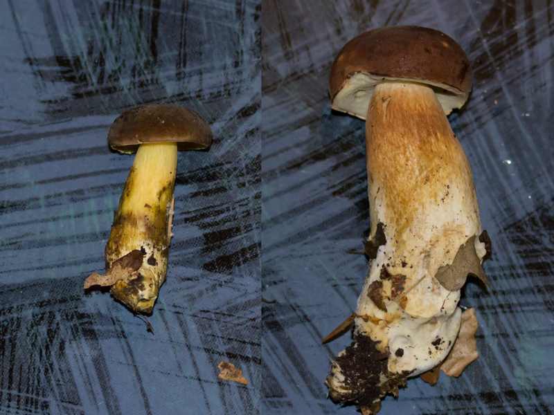 Links Herbstrotfuß, rechts Marone. Die Größenverhältnisse stimmen.