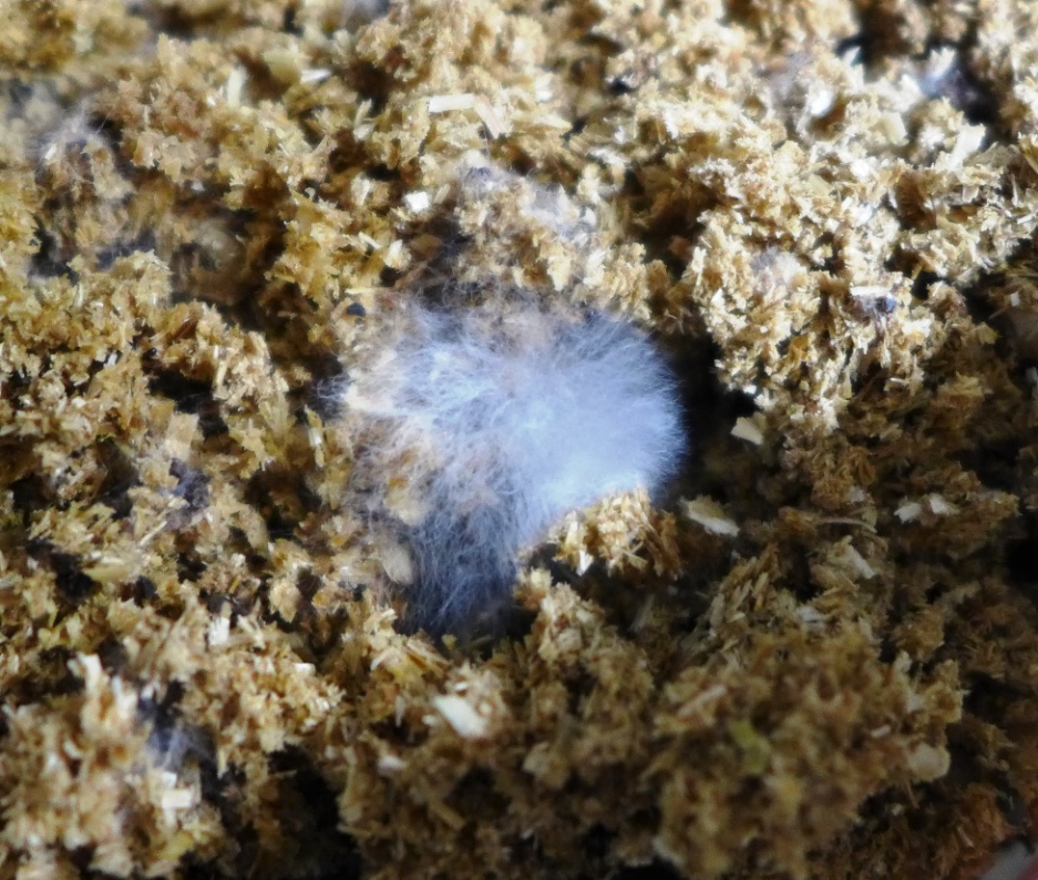 Den Eimer mit dem gesamten weißen Flaum habe ich auf unsere Terrasse gestellt - abgedeckt mit Silberfolie in der 4 daumengroße Löcher waren. Irgendwie dachte ich zwar, dass der ganze Weißbewuchs eher so eine Art Camembert-Schimmel sei, aber man lässt ja nichts unprobiert. Auf der Terrasse wares es Mitte Januar -3 Grad Celsius und ich hatte die letzte kleine Hoffnung, dass ja vielleicht was fruktifiziert. Aber weder nach 5 noch nach 10 Tagen änderte sich der weiße Flaum... also bin ich erst mal in den Urlaub gefahren.