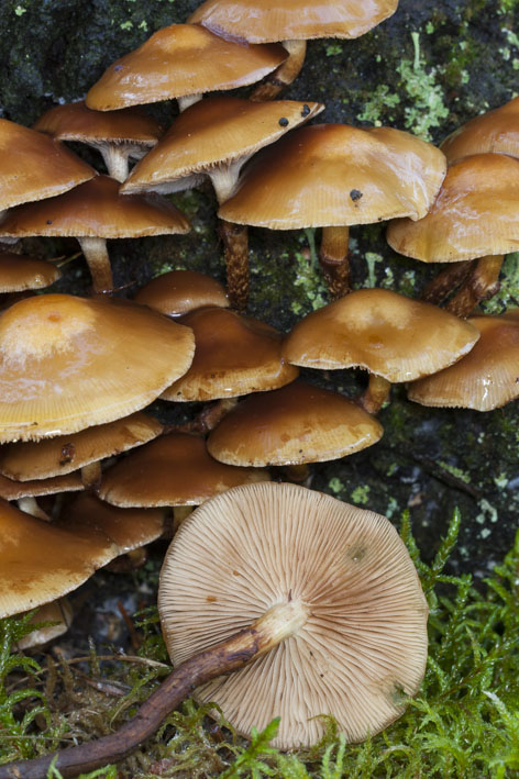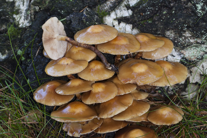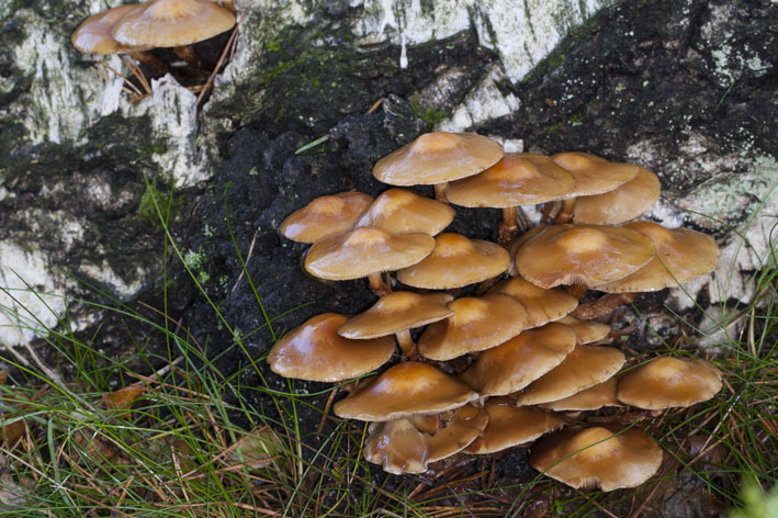 Hallo, an einem morschen Birkenstamm habe ich diese Pilzgruppe fotografiert. Handelt es sich um Stockschwämmchen (Kuehneromyces mutables)?