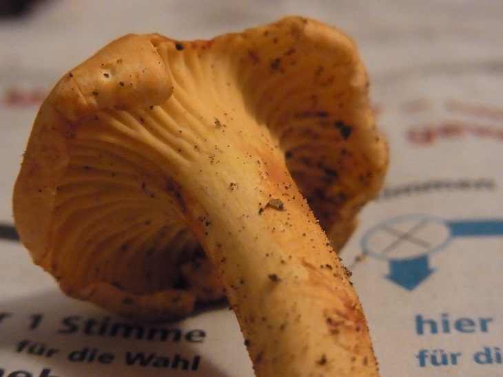 Aber eine Pfifferlingsart ist das schon, der Geruch ist nicht immer ausgeprägt. Das steht zwar immer so in Büchern, aber in ungefähr 40% aller Fälle riechen Pfifferlinge nur schwach oder gar nicht.Alle Angaben wie immer ohne Gewähr und ohne Verzehrfreigabe.