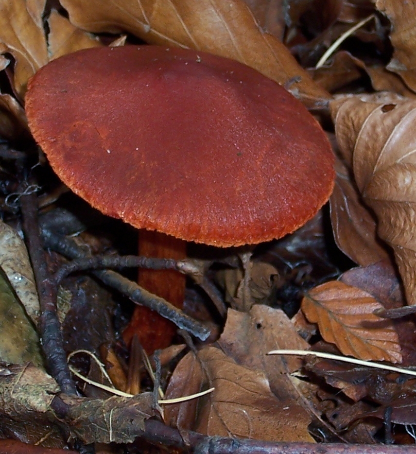 heute habe ich in einem Mischwald (vor allem Rotbuche und Hainbuche) einen auffälligen Pilz gefunden. Ich komme zum Zinnoberroten Wasserkopf / Zinnoberroten Buchen-Gürtelfuß (Cortinarius cannabarinus) = Zinnoberrroter Hautkopf (Dermocybe cinnabarina)