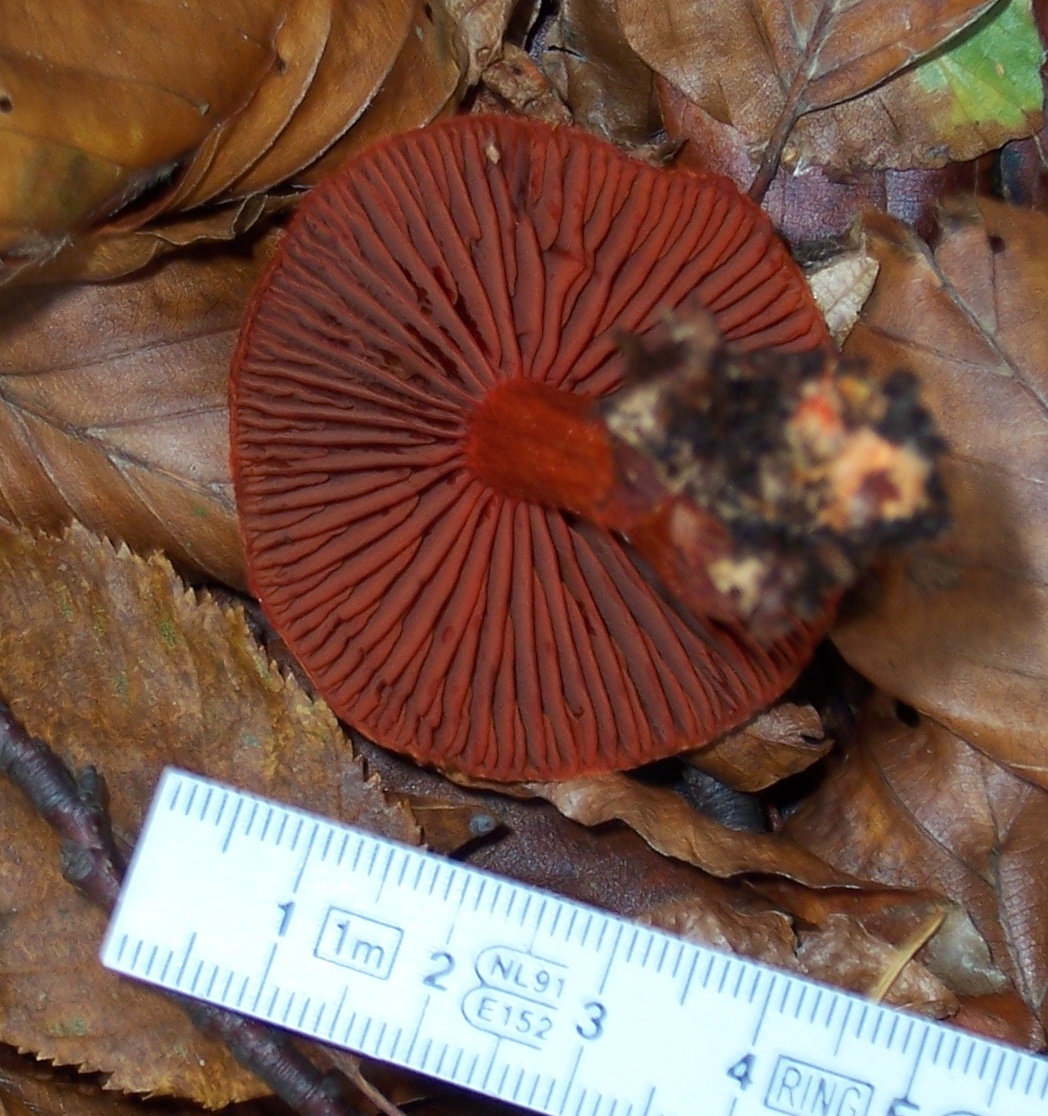 Wohl auch der Blutblättrige (C. semisanguineus), wo sich eigentlich immer ein farblicher Kontrast zwischen Hutoberfläche und Lamellenfarbe zeigt.