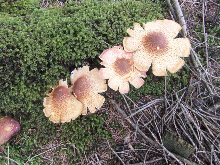 Ja, schon möglich. Der sehr undeutlich zu Erkennende ganz links kann schon Tricholomopsis rutilans sein. Oder eine Süßkartoffel.