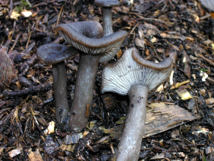 Ich lege mal die Karten auf den Tisch, nur, um zu zeigen, dass es auch ähnliche Trichterlinge gibt. An Reisighaufen im Nadelwald wächst z.B. Clitocybe ditopa, der Mehl-Trichterling, welcher aber auffällig nach Mehl riecht: