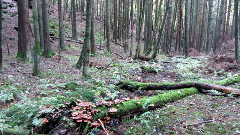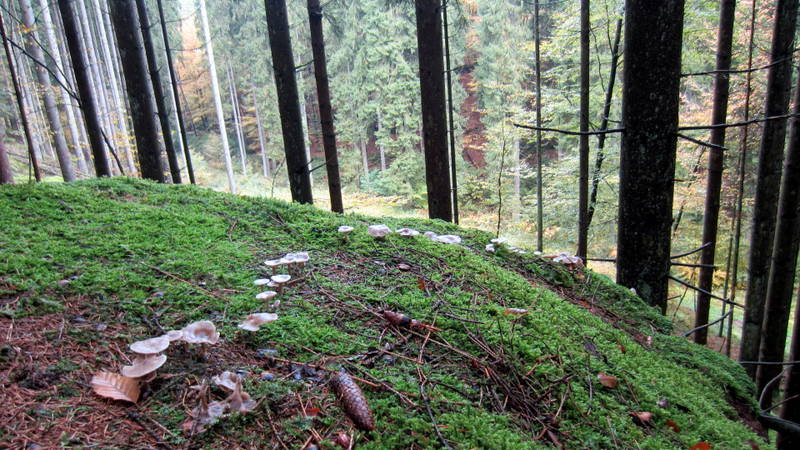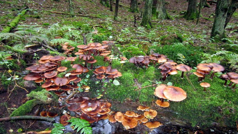 Auch hier sah man in Massen die Hallimasche, höchtwahrscheinlich Dunkler Hallimasch (Armillaria solidipes, syn. Armillaria ostoyae)