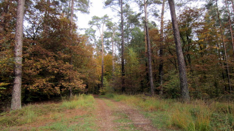 An einer Kreuzung, wo früher mal Bahn gefahren ist, wechselten wir wieder in einen Mischwaldstück, in dem meist die Kiefer wuchsen.