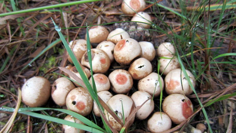 Hier dürften Birnen-Stäublinge (Lycoperdon pyriforme) sein.