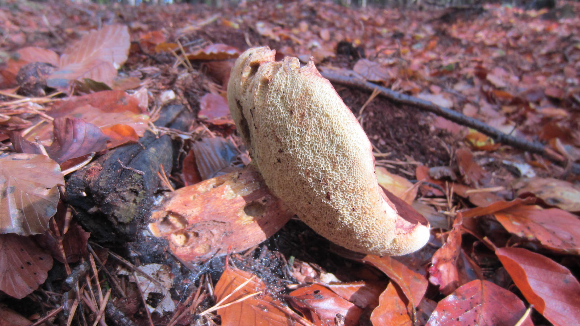 Überall sah man alte Fruchtkörper von Kiefern- oder Rothütigen Steinpilzen (Boletus pinophilus). -> Es müsste ein anderer Röhrling sein, evtl. ein Rotfußröhrling. Ich vermute, dass hier alte Exemplare vom Bereiften Rotfußröhrling (Xerocomellus pruinatus, syn. Boletus pruinatus, Xerocomus pruinatus) sein könnten. Danke Pablo & Malone-Peter, dass ihr mich darauf aufmerksam gemacht habt!
