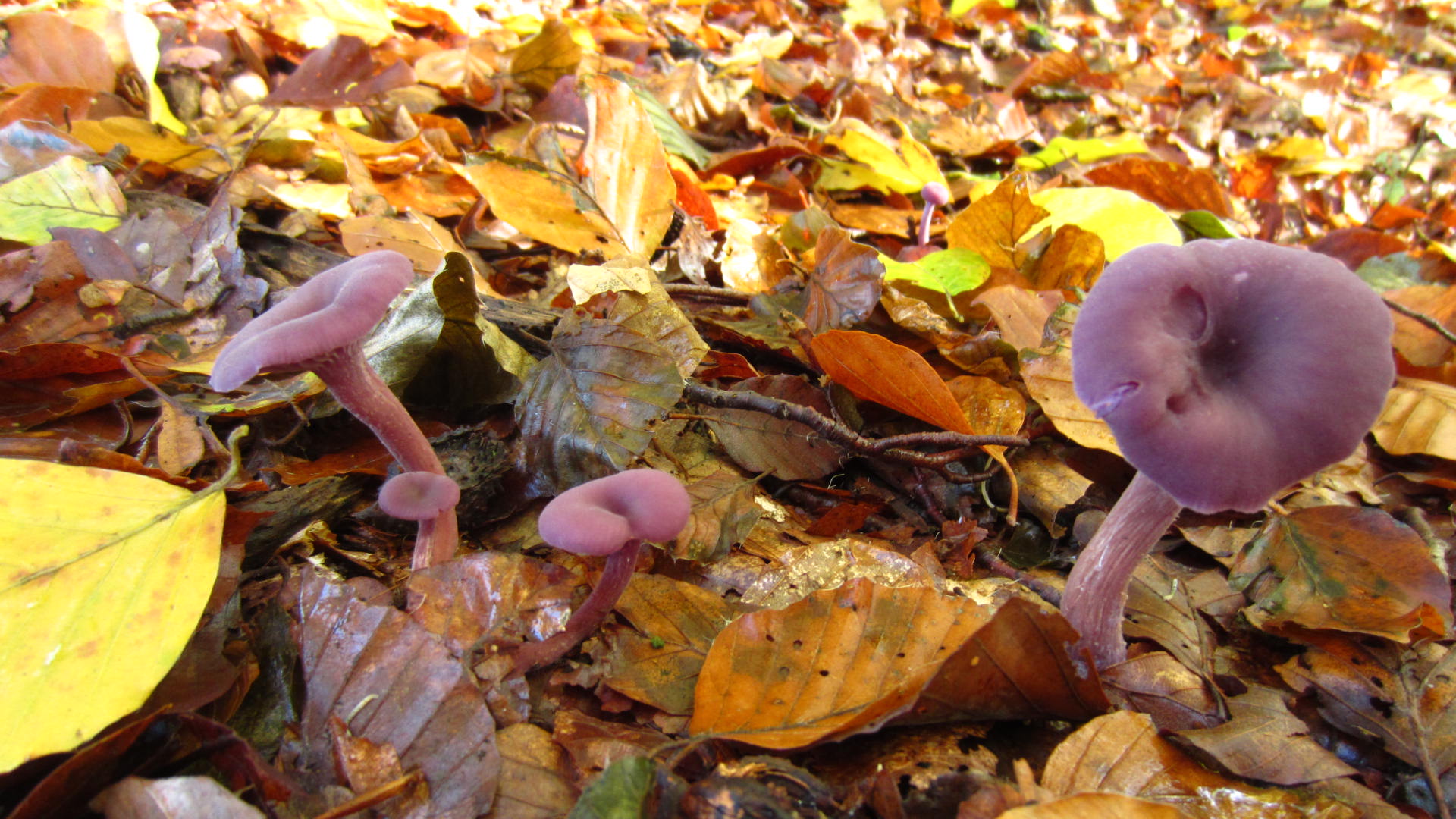 Es wuchen dort Unmengen von Amethystfarbenen Lacktrichterlingen (Laccaria amethystina)! So viele habe ich in meinem ganzen Leben nicht gesehen.