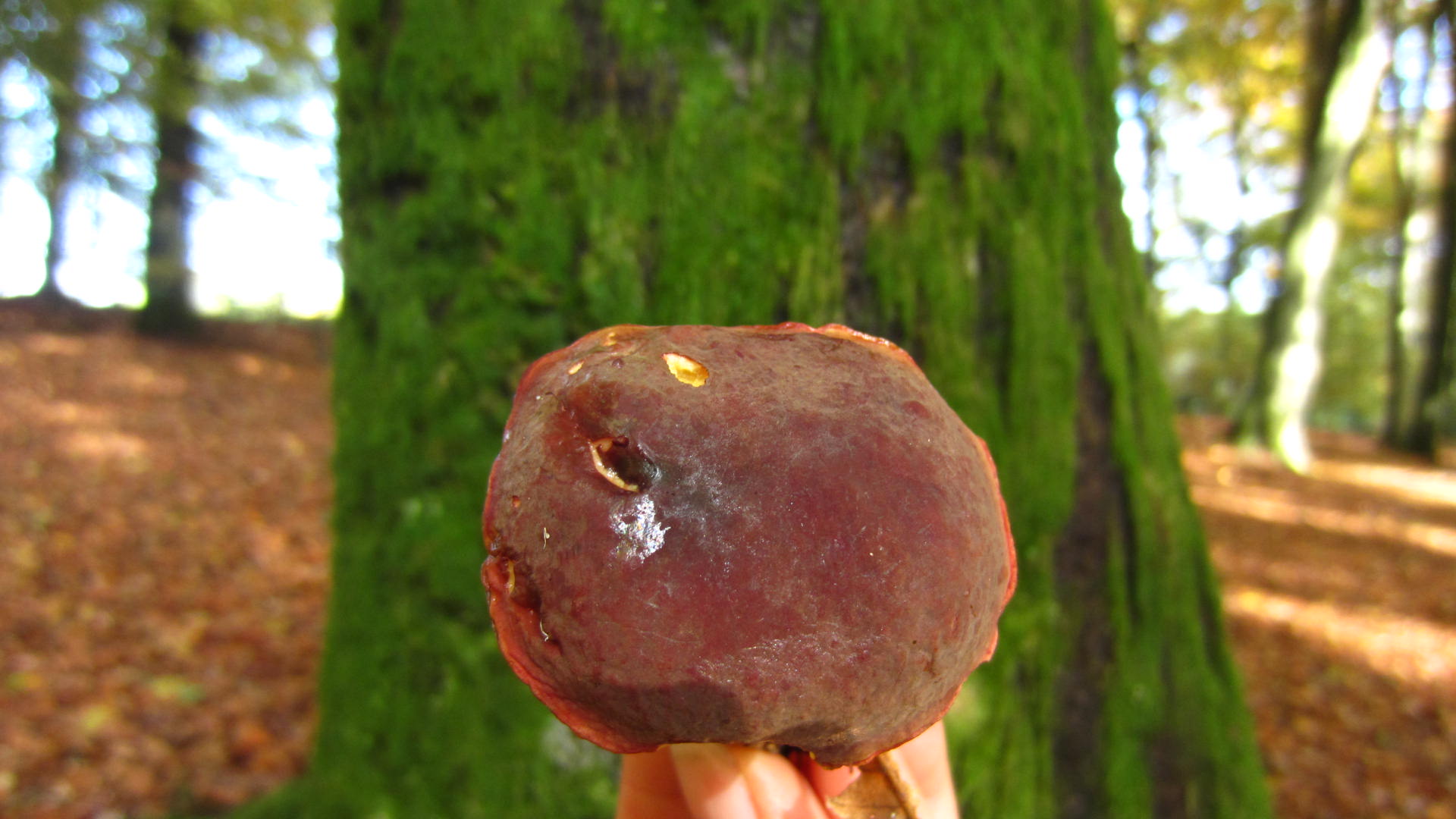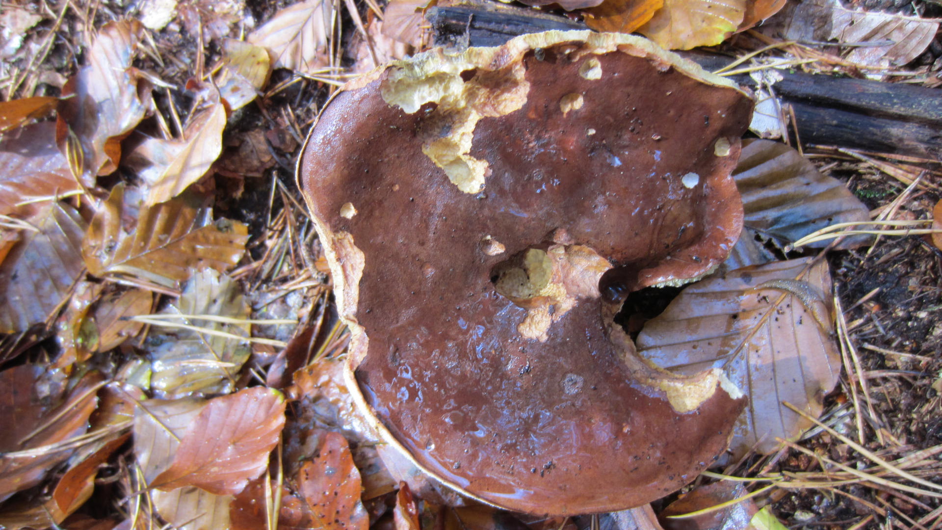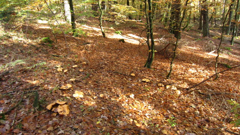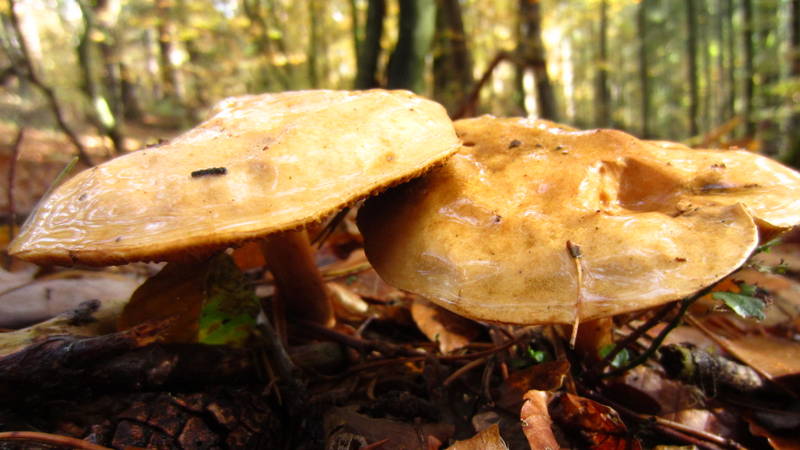 Lange stöberte ich im wunderschönen Buchenwald... bis ich an die "Kante" des Tals angekommen bin, wo ich am Vortag war. Hier fand ich Unmengen von Kuh-Röhrlingen / Kuhpilz (Suillus bovinus).