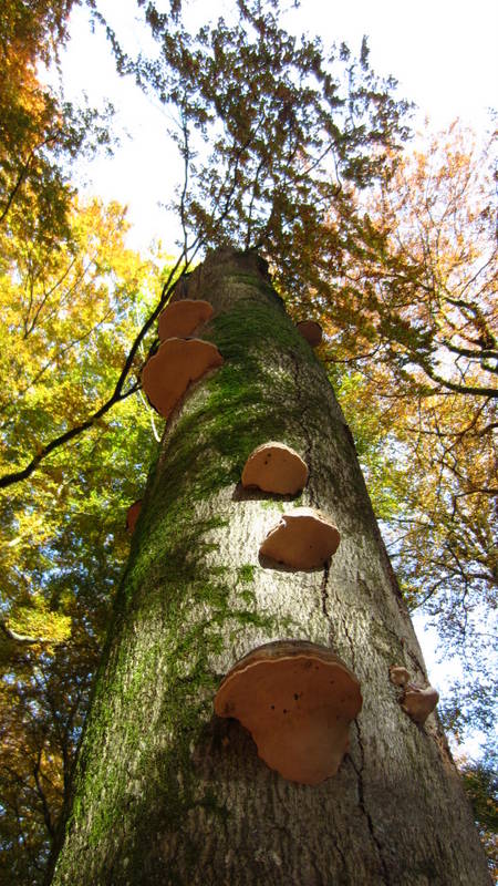 Alte Buchstämme, befallen von Zunderschwamm (Fomes fomentarius):