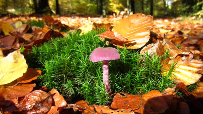 Auch am 2. Tag fand ich Dunkelviolette Schleierlinge (Cortinarius violaceus), die, wie verabredet, "Farbe in Farbe" mit den Amethystfarbenen Lacktrichterlingen standen.