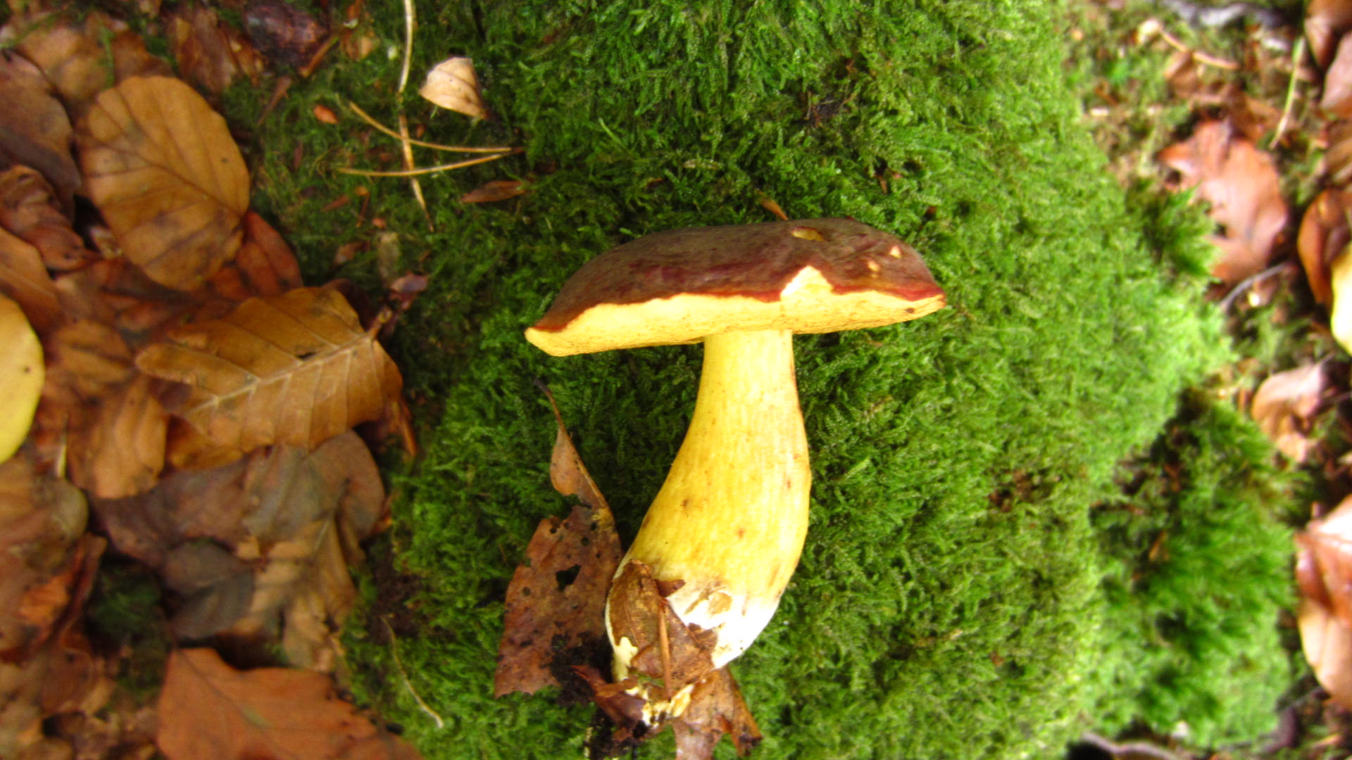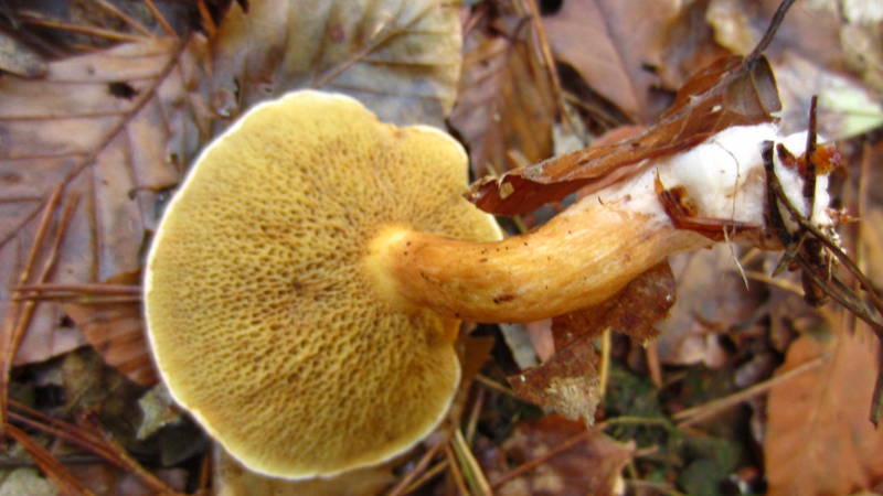 Lange stöberte ich im wunderschönen Buchenwald... bis ich an die "Kante" des Tals angekommen bin, wo ich am Vortag war. Hier fand ich Unmengen von Kuh-Röhrlingen / Kuhpilz (Suillus bovinus).
