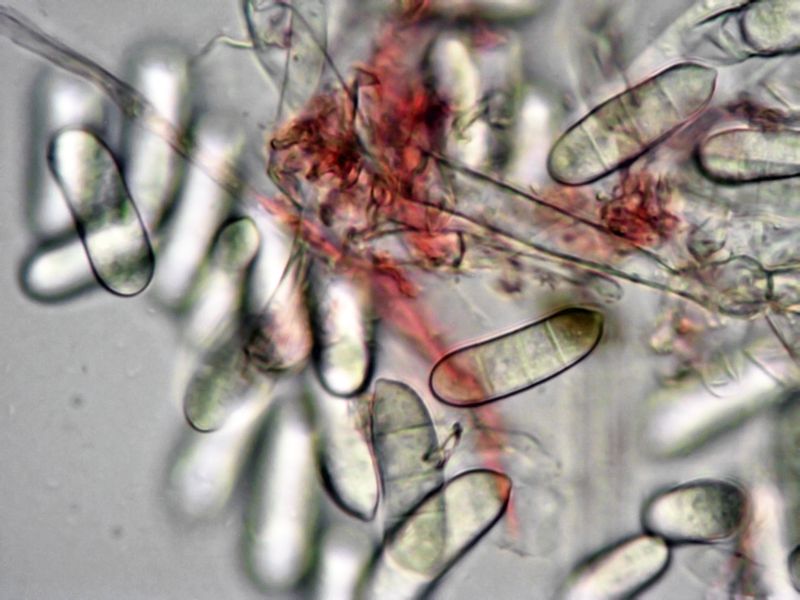 Mikroskopisch riesige Sporen: 44-58 x 25-28 µm, ohne Anhängsel gemessen, Asci 8-sporig.