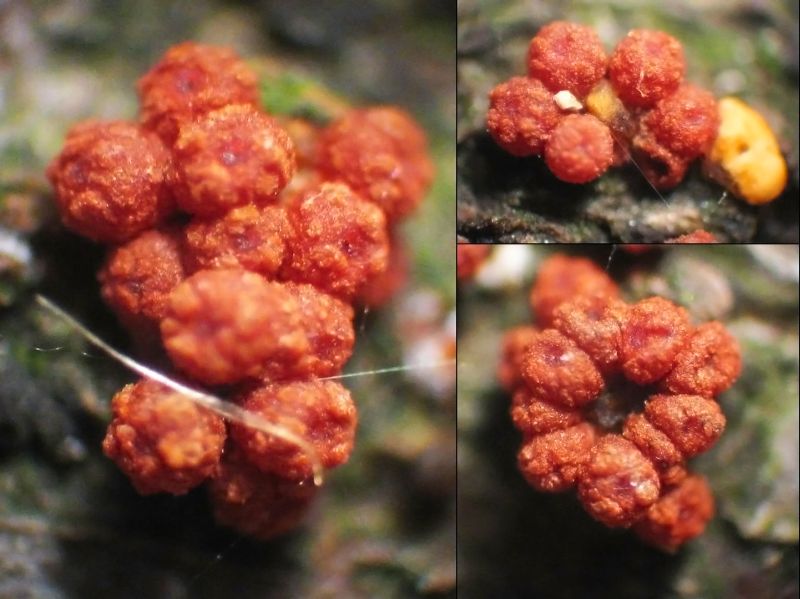 Metatrichia floriformis an Buchenholz, übrigens am gleichen Stamm, an dem ich auch Catinella olivacea gefunden hatte.