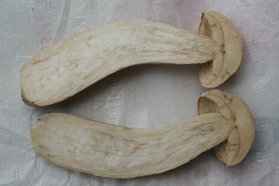 interessanter Fund. Irgendwie habe ich aber in Erinnerung, dass die Fruchtkörper des Weißlichen Moorbirkenpilzes im Schnitt basal blaugrün verfärben. Deshalb würde ich eine albinotische Form des gemeinen Birkenpilzes nicht ausschließen wollen. Noch eine Frage zum Schnittbild: Wie lange hast Du gewartet, ehe Du das Foto geknipst hast? Hintergrund: Etwaige Verfärbungen können eine Weile brauchen, bis sie sichtbar werden.