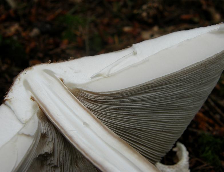 * Ich vermisse einen Ringwulst. Zwischen Lamellen und Stielansatz befindet sich zwar eine c.a. 4 mm breite leere Zone, die aber flach und glatt ist und kein Wulst.