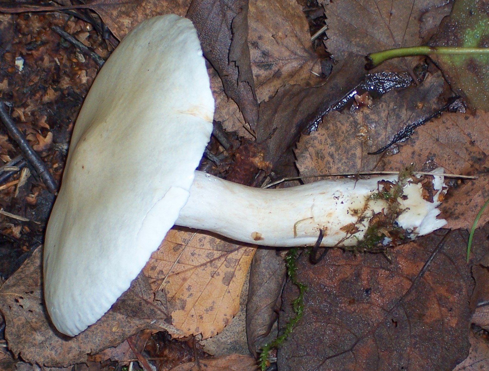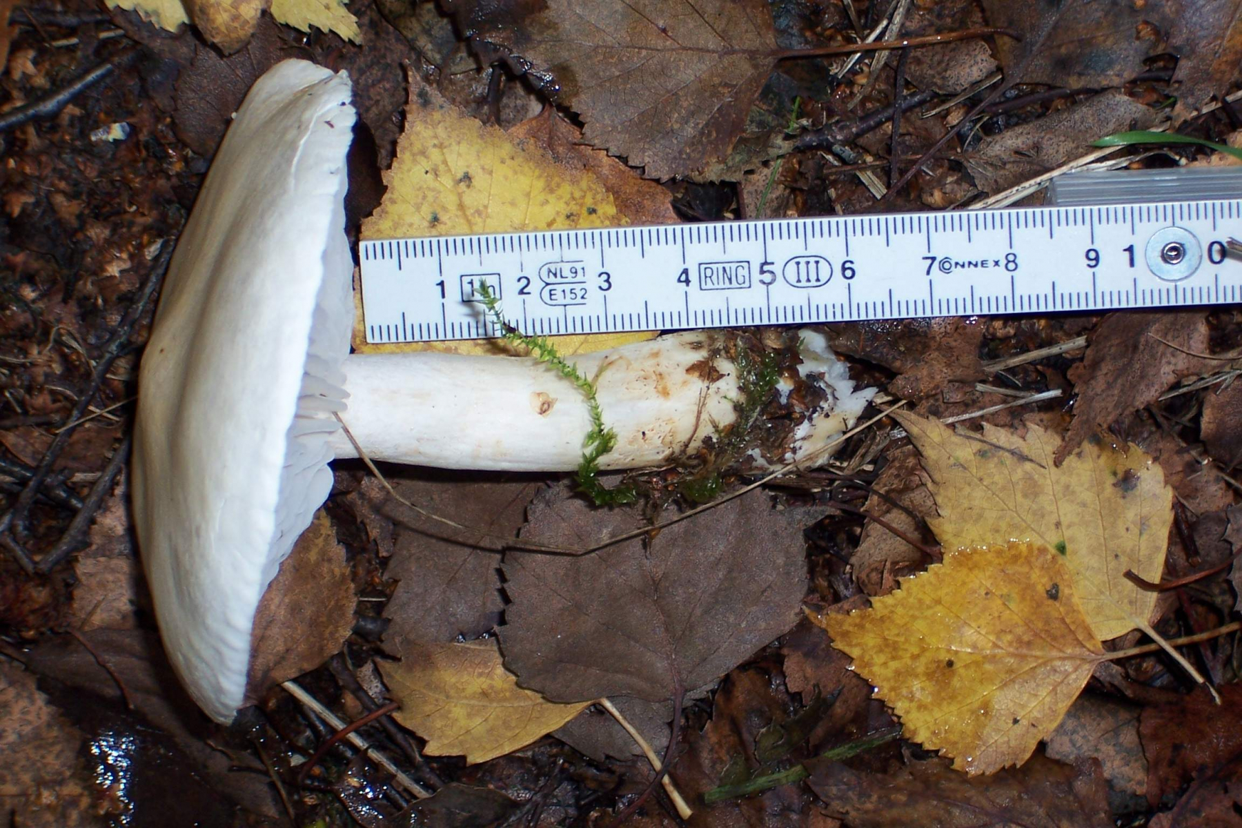 der Fund von diesem Pilz ist ein paar Tage her (24. Oktober), trotzdem wollte ich ihn vorstellen. Ich kam in den Bestimmungsschlüsseln zu Tricholoma stiparophyllum, der als Birken-Ritterling oder Gerippter Gasritterling