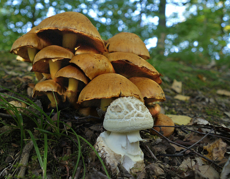 1 Grünblättriger - + Ziegelroter Schwefelkopf + Hallimasch