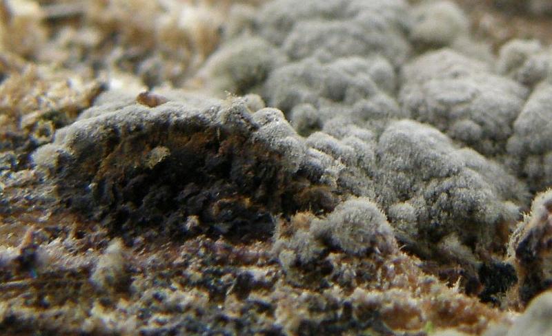 Dieser Pilz war eine Silbrige Fläche auf dem Boden, wo kleine weiße Salzige Punkte zu sehen waren.