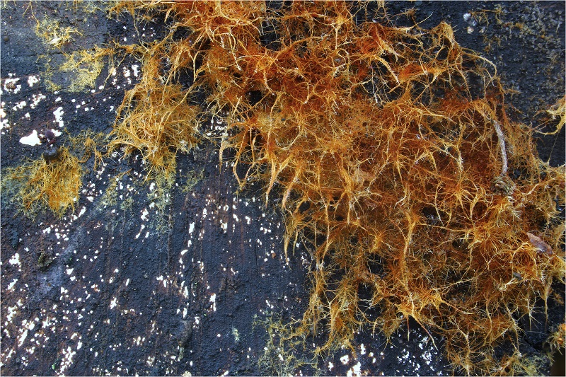 Ein Moos, vielleicht. Oder auch eine Flechte (Alge - Pilz - WG), oder doch ein echter Pilz? Eine Nebenfruchtform? Auch ein Subikulum (oder Ozonium? Wie heißt es nun eigentlich richtig? Oder ist das bei Basidios und Ascos was Unterschiedliches?) kann doch sein sein?