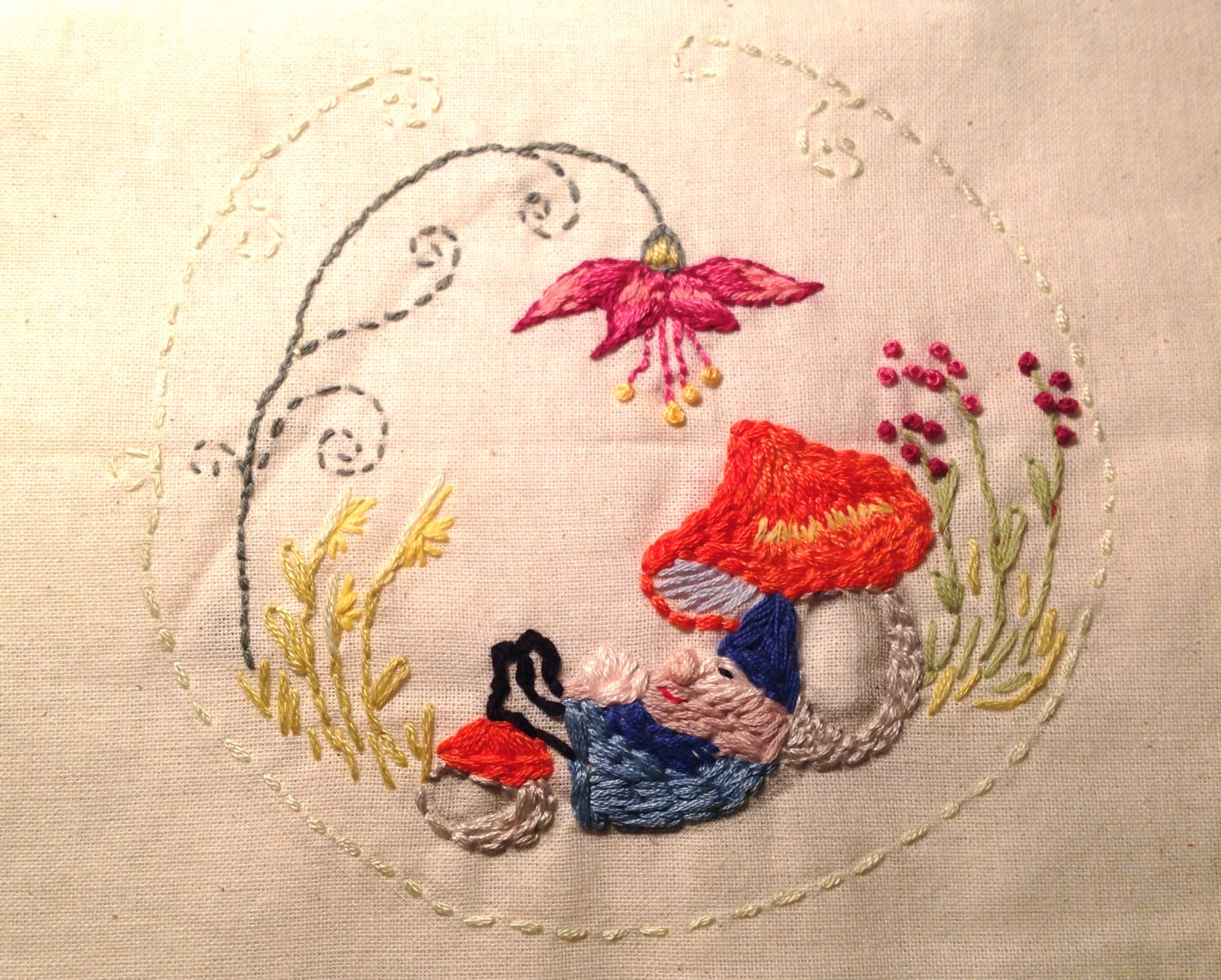 Ich habe noch was gestickt in der letzten Woche. Zwergenferien im Sommer... ist noch ein bisschen knitterig, ich muss es noch auf einen Hintergrund aufziehen.
