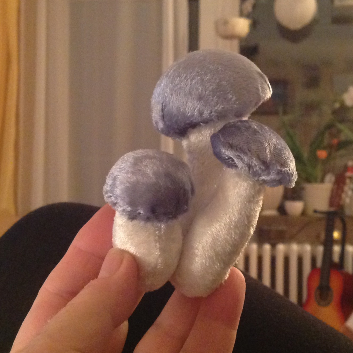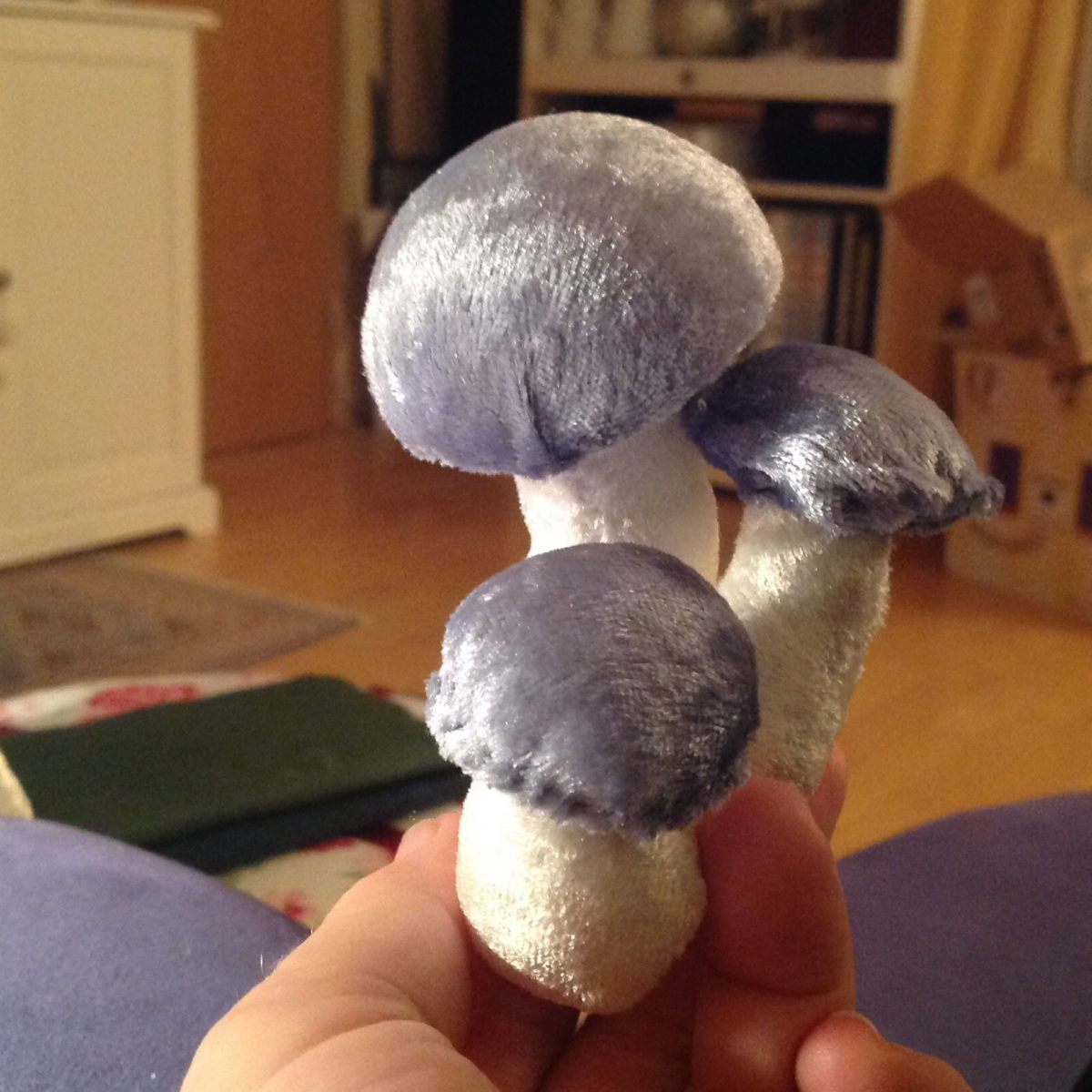 Mal wieder können meine Finger nicht Ruhe geben. Hier präsentiere ich Euch den Stahlblauhütigen Kuschelpilz. Er wächst nur in der Nähe von Handarbeitskörbchen und Nähkästchen. -