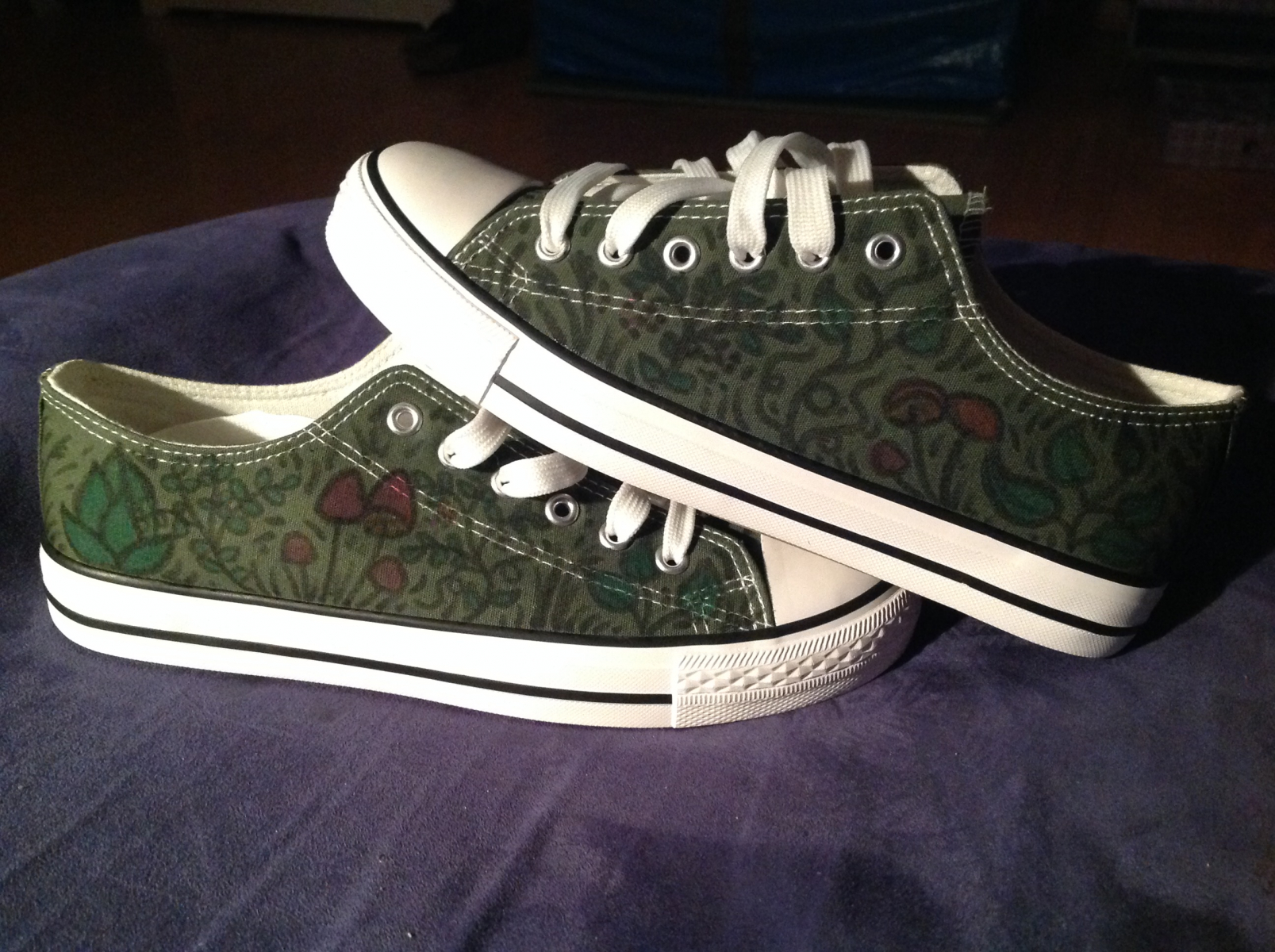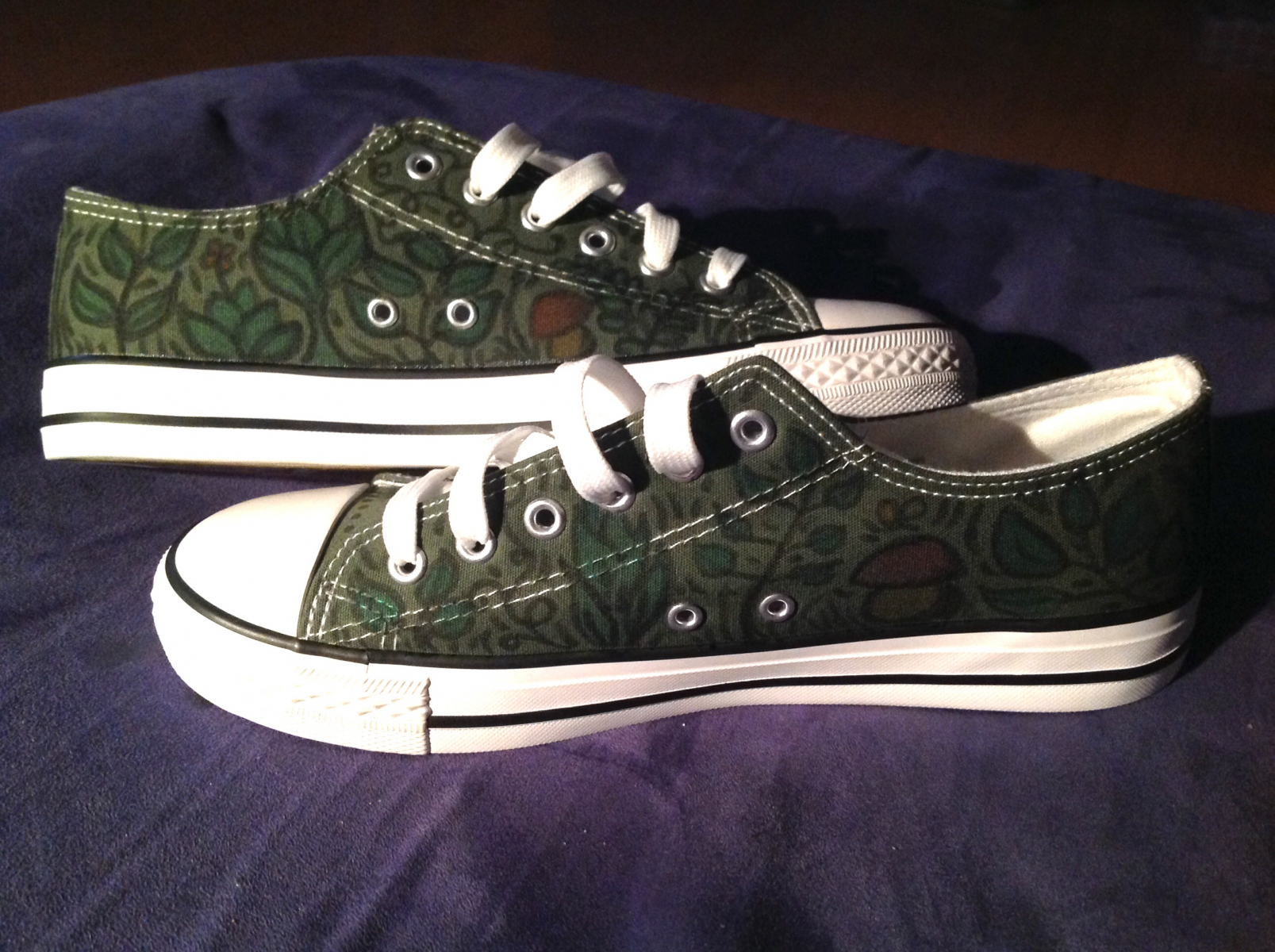 Es sind T-Shirt-Marker, die eigentlich wohl eingebügelt werden müssen, deshalb weiß ich noch nicht so recht, wie es halten wird. Wenn nicht, nehme ich das nächste mal Edding. Das sollte dann halten. Vielleicht kann man die Farbe aber auch mir einem Föhn fixieren.