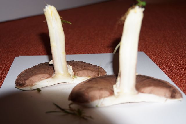 2b. Pilze haben in der Stielbasis kein gelbes/nur blassgelbes Fleisch, riechen nach Bittermandeln/Marzipan oder anis-/gewürzartig ... 5