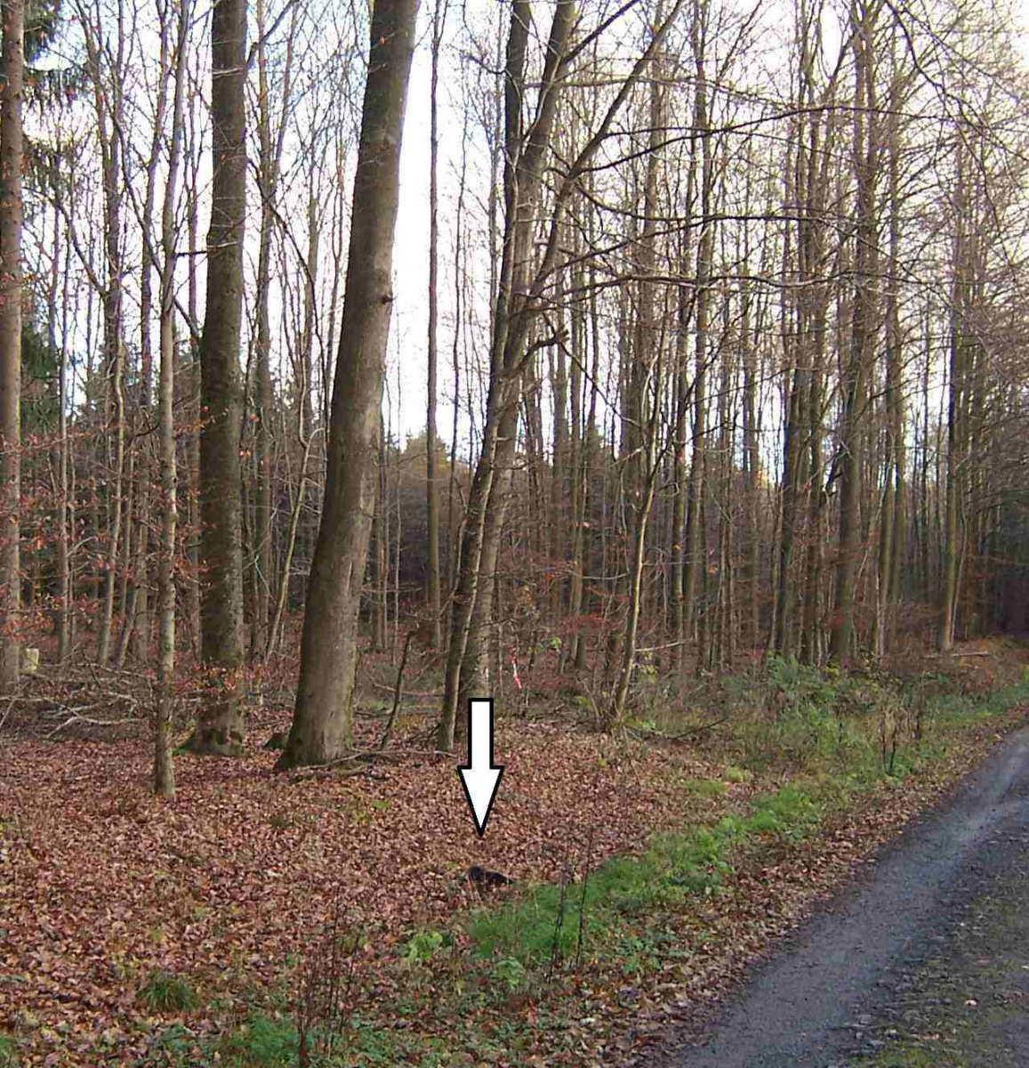 Standort: zwischen Forstweg (fast schon -strasse) und einer Reihe von Buchen.