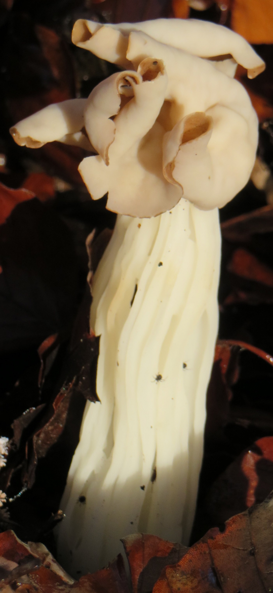 Der erste Pilz stand am Wegrand in einem Laubwald. Im Schnitt bestand er aus Maccaroni-großen Hohlröhren, Höhe c.a. 12 cm. Vermutlich eine Herbstlorchel:
