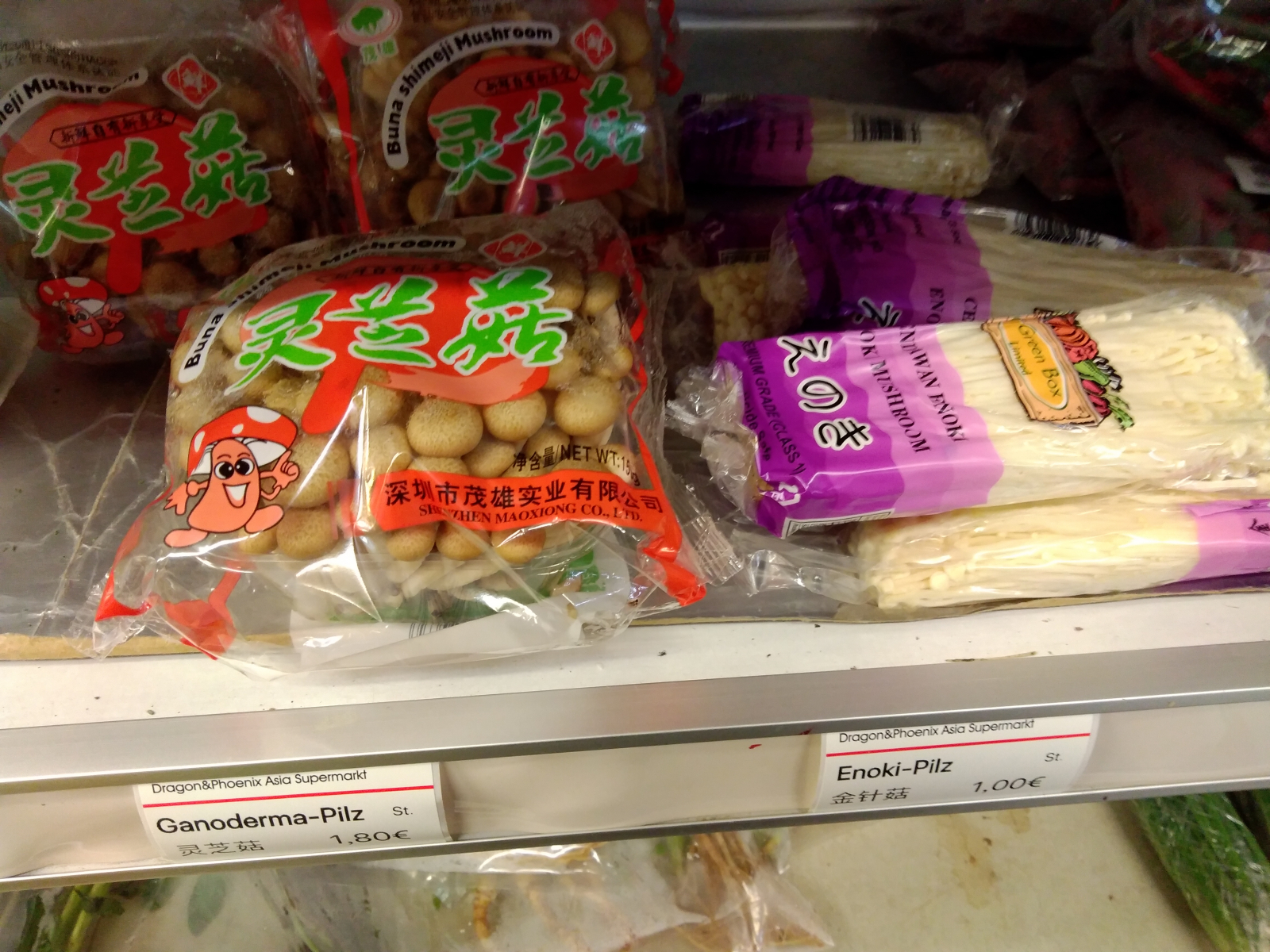 Shiitake und Mu-Err habe ich nicht fotografiert, weil es sie in solchen Geschäften immer obligatorisch gibt.