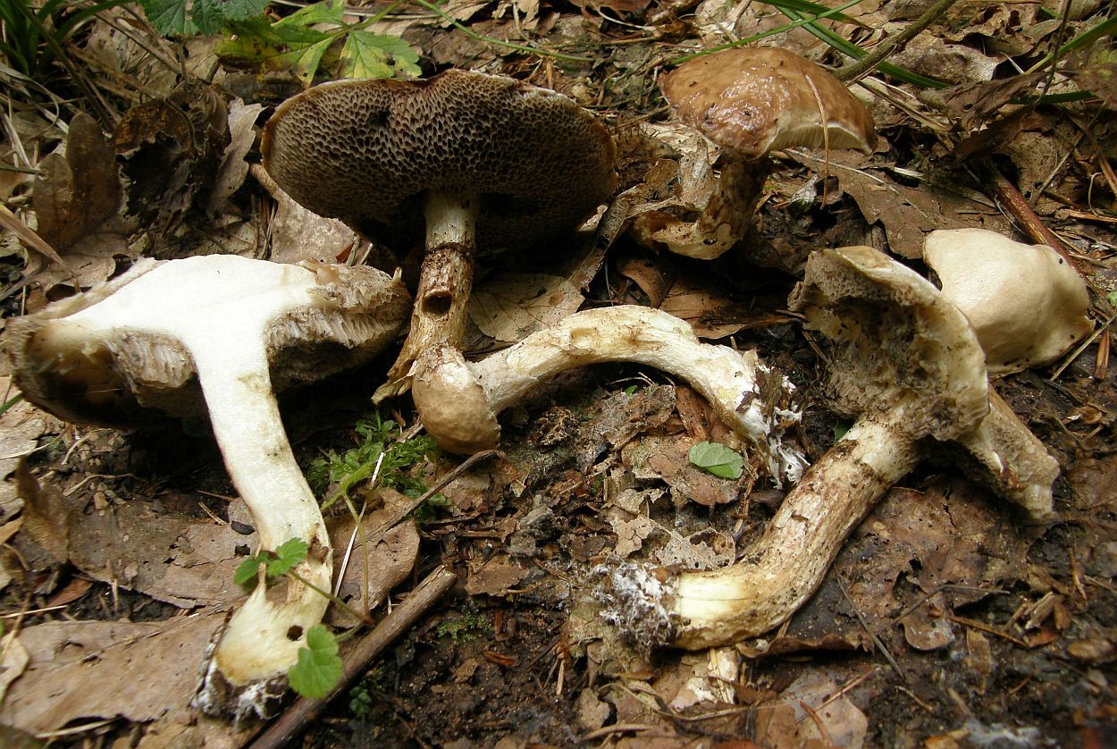 Röhren: Erst grau-weiß später dunkel-grau am Stiel angewachsen und meist herablaufend. Der Pilz hat weite und eckige Poren, die im Alter zum Hutrand hin verlängert sind. Sie sind von grau-weißer, später schmutzig grauer Farbe, die auf Druck leicht dunkeln