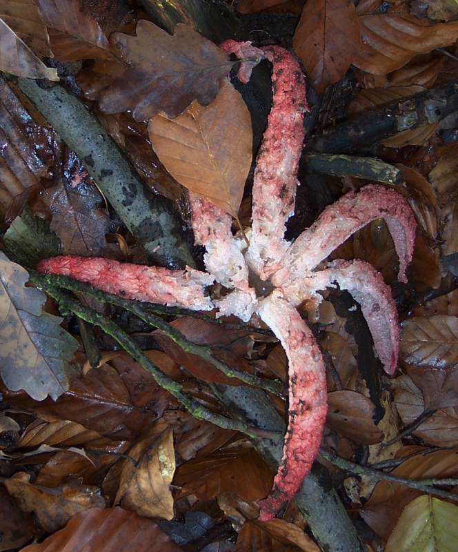Der Erstnachweis im Hakel, dieser in Europa eingeschleppten und erstmals um 1914 in den Vogesen beobachteten Art, gelang M. STUBBE. Die Art ist auch im Hakel in Ausbreitung begriffen und hier keinesfalls als selten anzusprechen. Interessant war der Fund vom 10.08.1997. Es wurden etwa 30 sogenannte –Hexeneier– in einem Eichen-Hainbuchenwald am Wegrand gefunden. Durch anhaltende Trockenheit verharrten die Fruchtkörper in diesem Entwicklungsstadium (10.08.97 - 06.09.97!). Erst nach einsetzenden Regenfällen wurde das Receptaculum aus der –Eihülle– geschoben und fünf leuchtend rote Arme entfalteten sich.