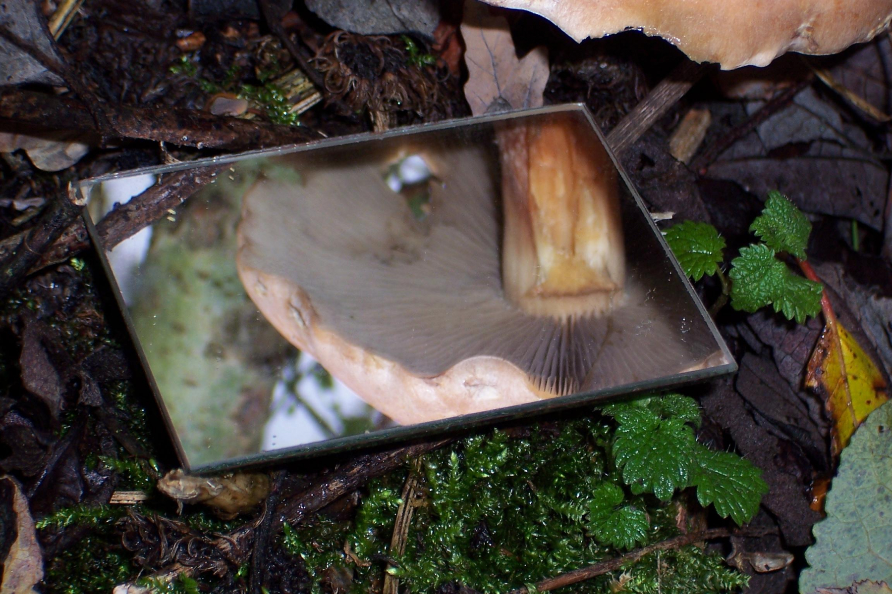 (7) Da ich den Pilz stehen lassen wollte hier ein Versuch mit einem Taschenspiegel