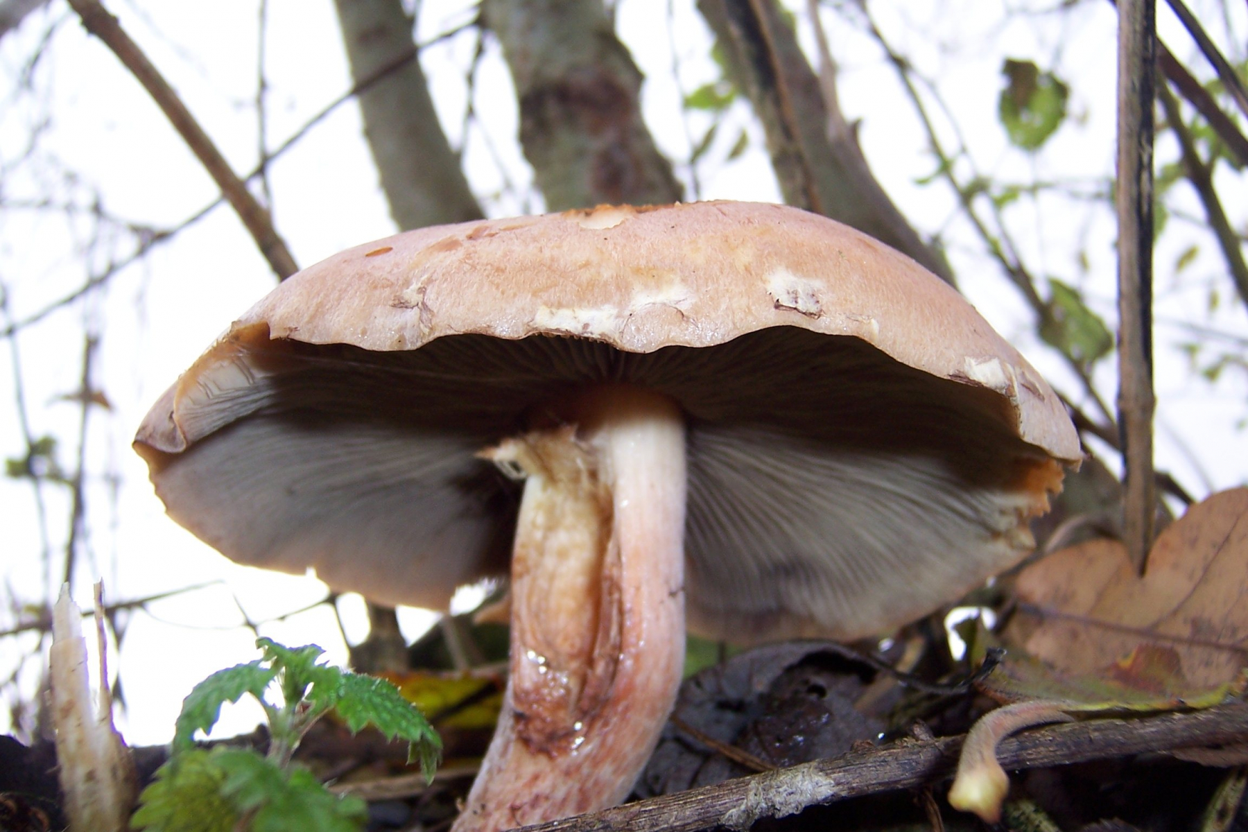 Das ist zwar der schönste von allen, aber ich habe überhaupt keine Idee. Holzritterlinge wachsen auf Nadelholz, der Hut wäre auch stärker geschuppt.
