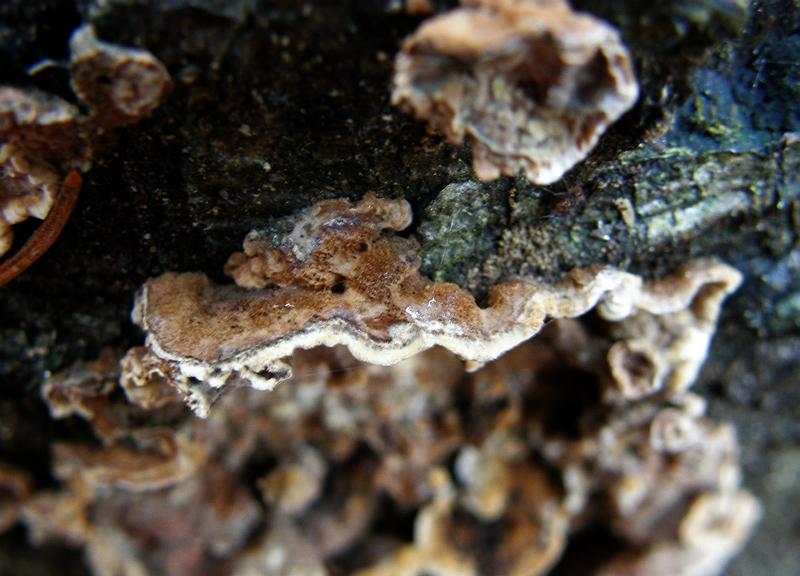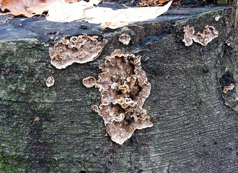 Tja. Stereum rugosum sollte verfärben, auch passt da die Farbe nicht so richtig, oder?