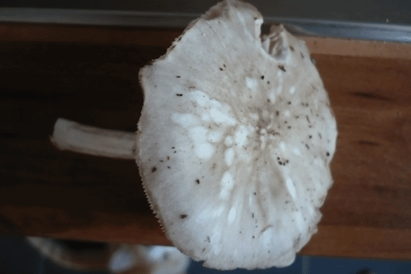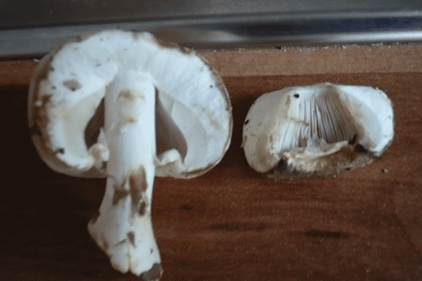 Bei dem 7ten Bild habe ich ebenfalls 2 Lamellen Pilze, als man sie Abschnitt sah man nichts eher nach einer gewissen Zeit wurde der Anschnitt leicht rosa, später dunkelbraun, fast schwarz. Habe ich auf Mos gefunden daneben ein toter Baumstumpf.