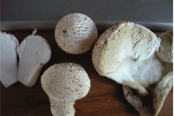 (b) Egerlingsschirmlinge (Gattung Leucoagaricus)- Und als ferner liefen könnte man noch hinzufügen: