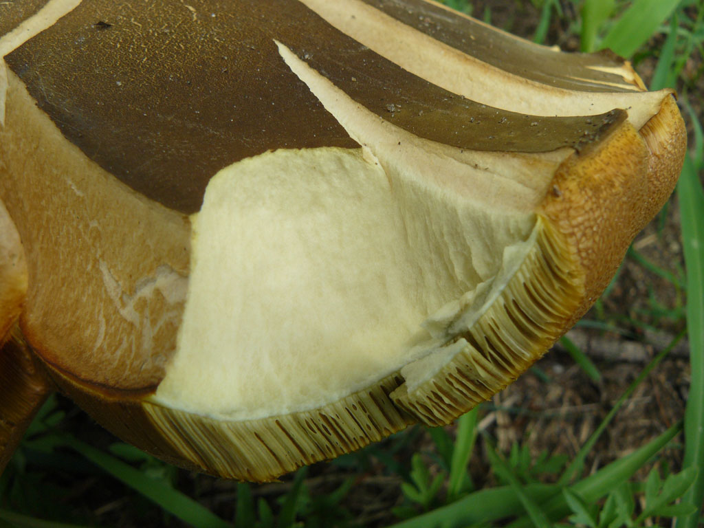 • Auf Bild 2 meine ich deutlich ein ansatzweises Blauen über den Röhren zu sehen, das machen hierzulande z. B. der Sandröhrling oder der Anhängselröhrling. Für beide passt freilich die Tramafarbe nicht. Maiglöckchens Beschreibung (reinweißes, nicht blauendes Fleisch) und das gezeigte Bild widersprechen sich meiner Meinung nach. Ferner staune ich über eure Fähigkeit, auf diesen Bildern einen roten Stiel zu erkennen. Oder mein Billigmonitor bringts mal wieder nicht.
