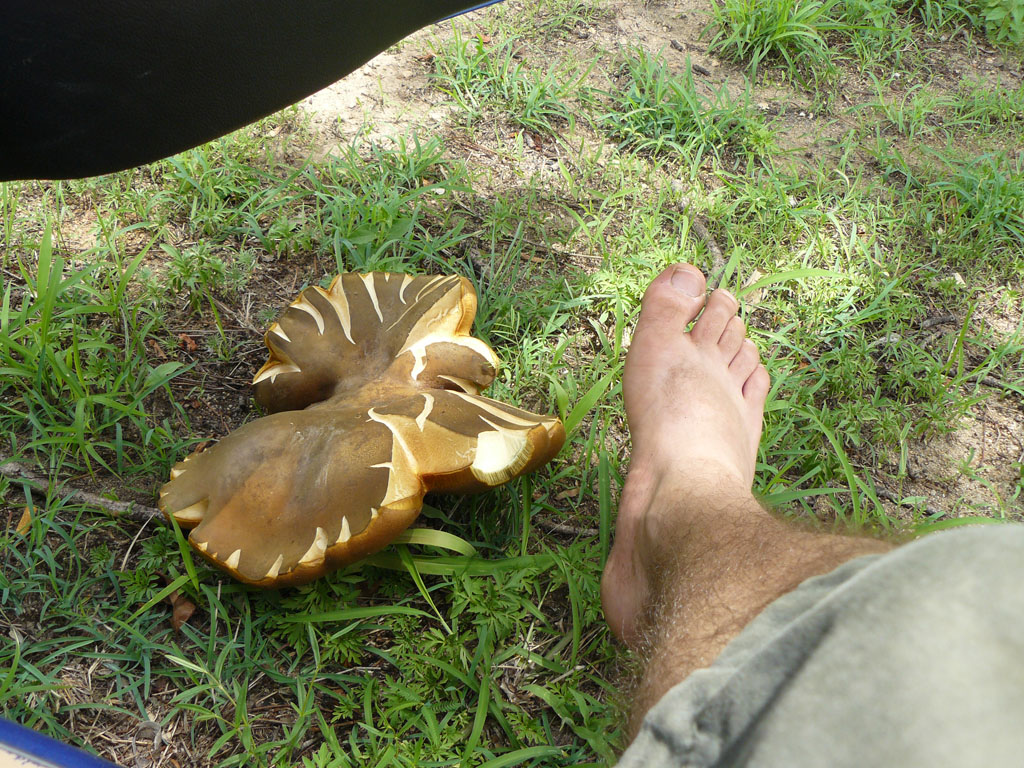 Selbstgesammelte Pilze aus überseeischen Landschaften zu essen würde ich mich persönlich nicht trauen, auch wenn sie unseren heimischen Arten ähnlich sehen sollten. Hier ging es gut. Doch auf diese Art sollen sich Touristen schon verschiedentlich vergiftet haben (Hasenröhrling & Co.). Schütteln wir nicht auch den Kopf über Weithergereiste, die sich mit unseren heimischen Giftpilzen vergiften? Man sollte unbedingt Einheimische fragen oder in ein regionales Pilzbestimmungsbuch schauen, sofern verfügbar.