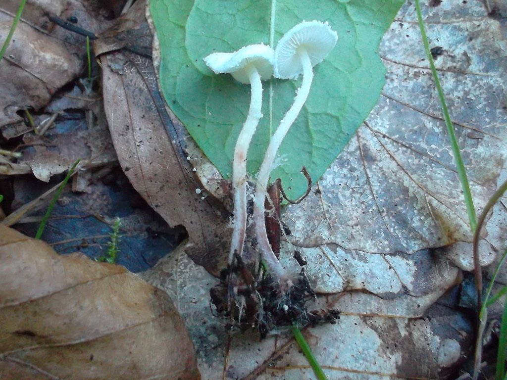 Denke mal, das werden Schwindlinge (Marasmius) auf Laub sein.oder Mycena capillaris?