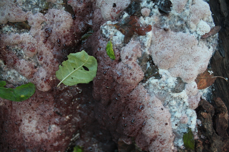 Wie Gries mit Marmelade am Baumstumpf, so in etwa sah das Schleimpilzarrangement aus.