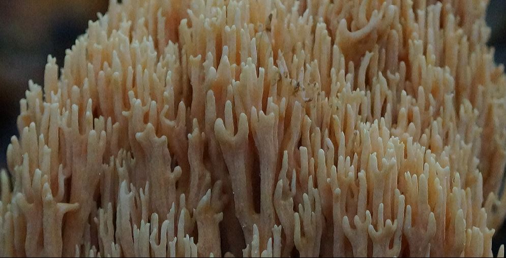 Die Koralle habe ich im Vorbeilaufen mitgenommen. Rein bebildert, die auch nicht sonderlich gut wurden. Nach dem Substrat habe ich nicht geschaut, da sie auf Waldboden wuchsen (es waren 2), das heißt, ich hätte buddeln müssen. Ob das Substrat noch zu bestimmen gewesen wäre, vermag ich nachträglich nicht zu beurteilen, weil ich nicht danach geschaut habe. Das Substrat lag aber unterirdisch, was die Bestimmung nicht leichter macht, obwohl ich mit der Bestimmung von Holz an für sich keine Schwierigkeiten habe.