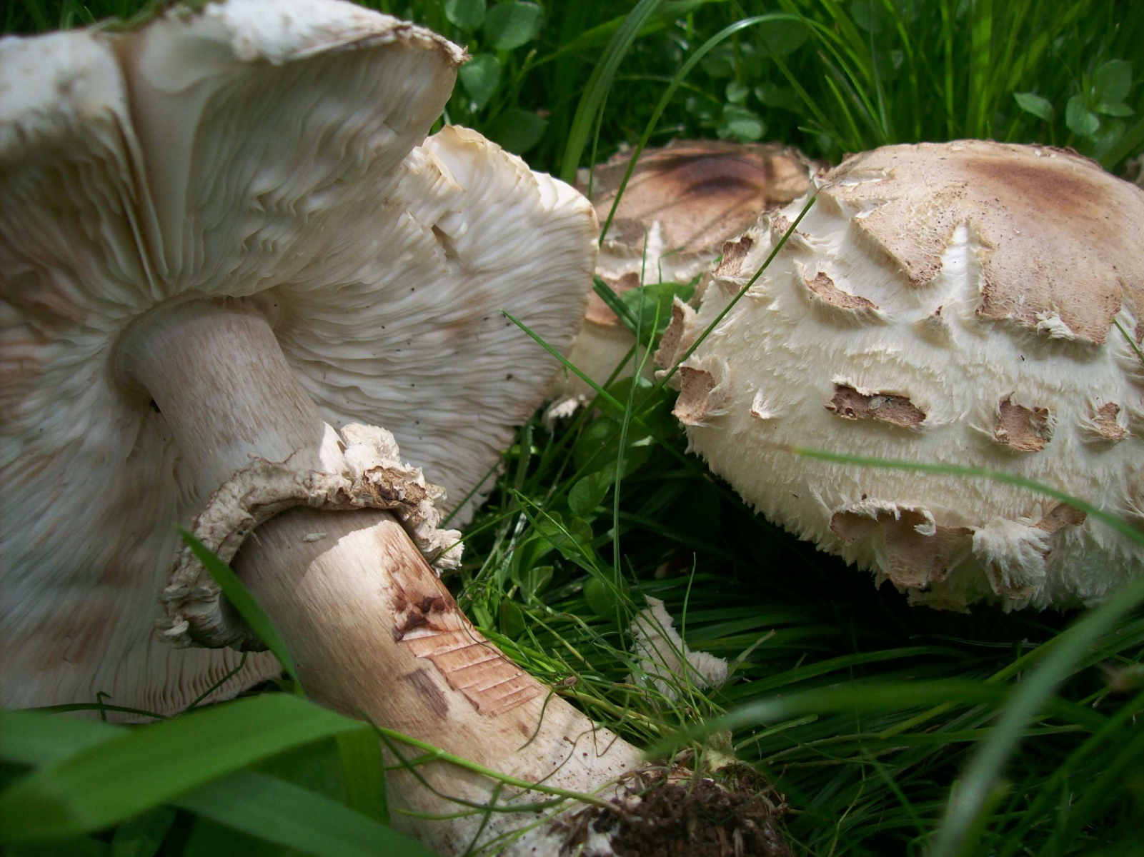 Der Jungfern – Riesenschirmling hat eine viel feinere Hutschuppung und verfärbt nicht bzw. bräunt nur schwach.