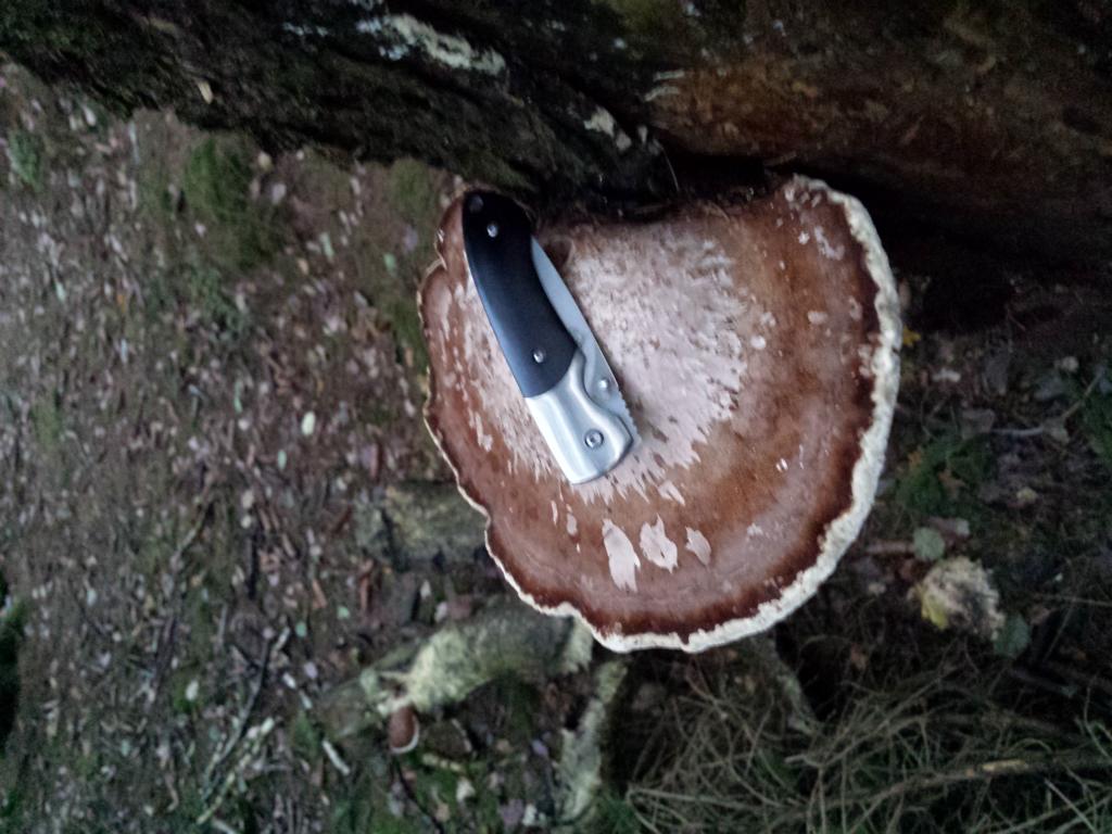 Im Folgenden ein paar (mal wieder nicht so gute) Handybilder von den Birkenprolingen und den Gelbstieligen Muschelseitlingen. Zum Erkennen der Größe habe ich mal mein Messer, das auf beiden Seiten aus meiner Faust raus ragt wenn ichs zugeklappt in der Hand halte, auf den einen Porling gelegt. Man sieht ihn auch von unten, der ist noch null angeknabbert gewesen, wirklich schön. habe ihn aber stehen lassen... gab ja genug Kleinere.