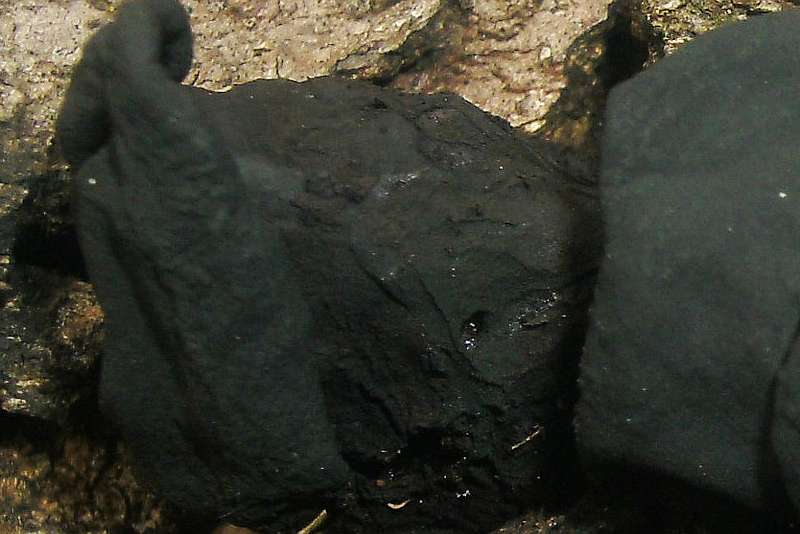 Farbe pechschwarz u. glänzend, gesamte Oberfläche warzig-rauh