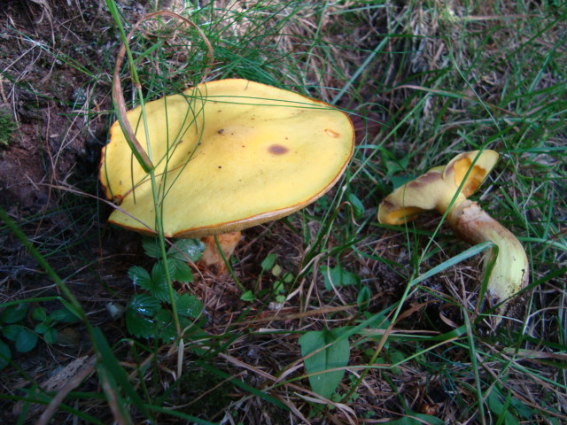 Und dann auch noch diesen hier, dessen Hut und Röhren im Gegensatz zu den anderen Goldröhrlingen ganz dottergelb sind.