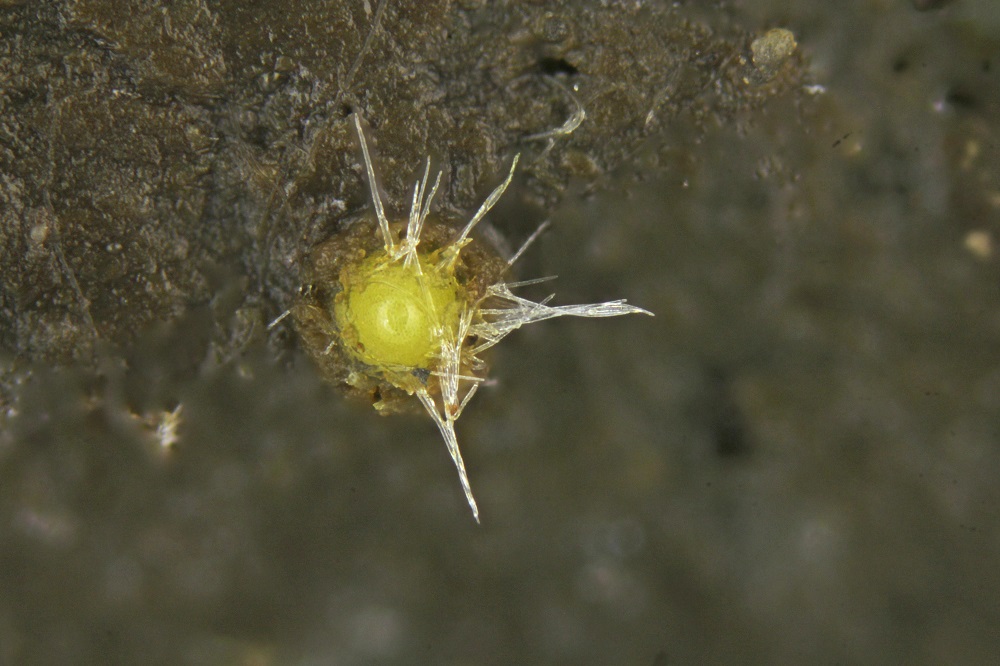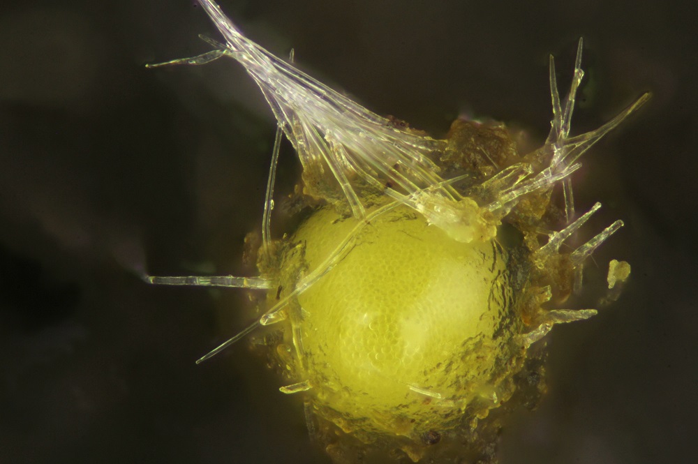Und aus was bestehen die vielen kleinen Goldkügelchen zwischen den Sporen?